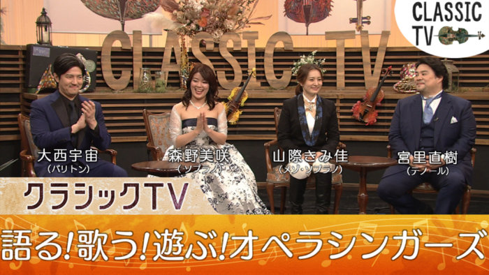 日本のオペラ界をけん引する若手オペラシンガー、ソプラノ・森野美咲、メゾソプラノ・山際きみ佳、テノール・宮里直樹、バリトン・大西宇宙の4人がスタジオで語って歌って遊ぶ!? 「一体どんな人たち?謎多きオペラ歌手たちのチャーミングな素顔に迫る」「あのスゴい声の秘密とは?オペラ以外の歌を歌うとどうなる?早口言葉のカツゼツが良すぎる?」「『NHKニューイヤーオペラコンサート』とのコラボ企画、オペラ歌手が歌う『オペラ座の怪人』」・・・。