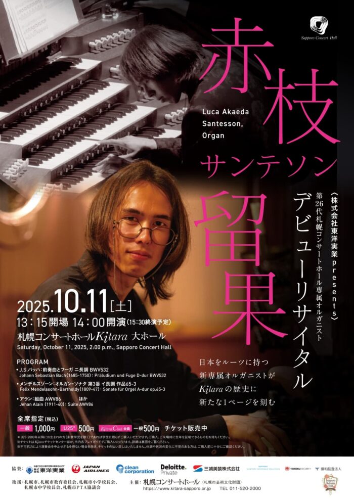 第26 代札幌コンサートホール専属オルガニスト 赤枝 サンテソン 留果 デビューリサイタル