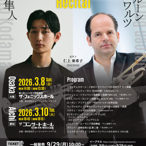 ●10月26日(水) ■佐川和冴 ブラームス:7つの幻想曲集 作品116 リュンフェルト:《ウィーンの夜会》ヨハン・シュトラウスII世のワルツ主題による演奏会用パラフレーズ 作品56 ■山縣美季 モーツァルト:ピアノソナタ 第18(17)番 K.576 ニ長調 シマノフスキ:変奏曲 Op.3 変ロ短調 ■高井玄樹 フランク(バウアー編曲):前奏曲、フーガと変奏曲 ロ短調 Op.18 ショパン:練習曲 ロ短調 Op.25-10 モーツァルト(リスト編曲):アヴェ・ヴェルム・コルプス K.618 バッハ:平均律クラヴィーア曲集第1巻より第24番 ロ短調 BWV869 ■秋山紗穂 ラフマニノフ:プレリュード ト長調 Op.32-5 ベートーヴェン:ピアノソナタ第23番《熱情》へ短調 Op.57 ●10月27日(木) |