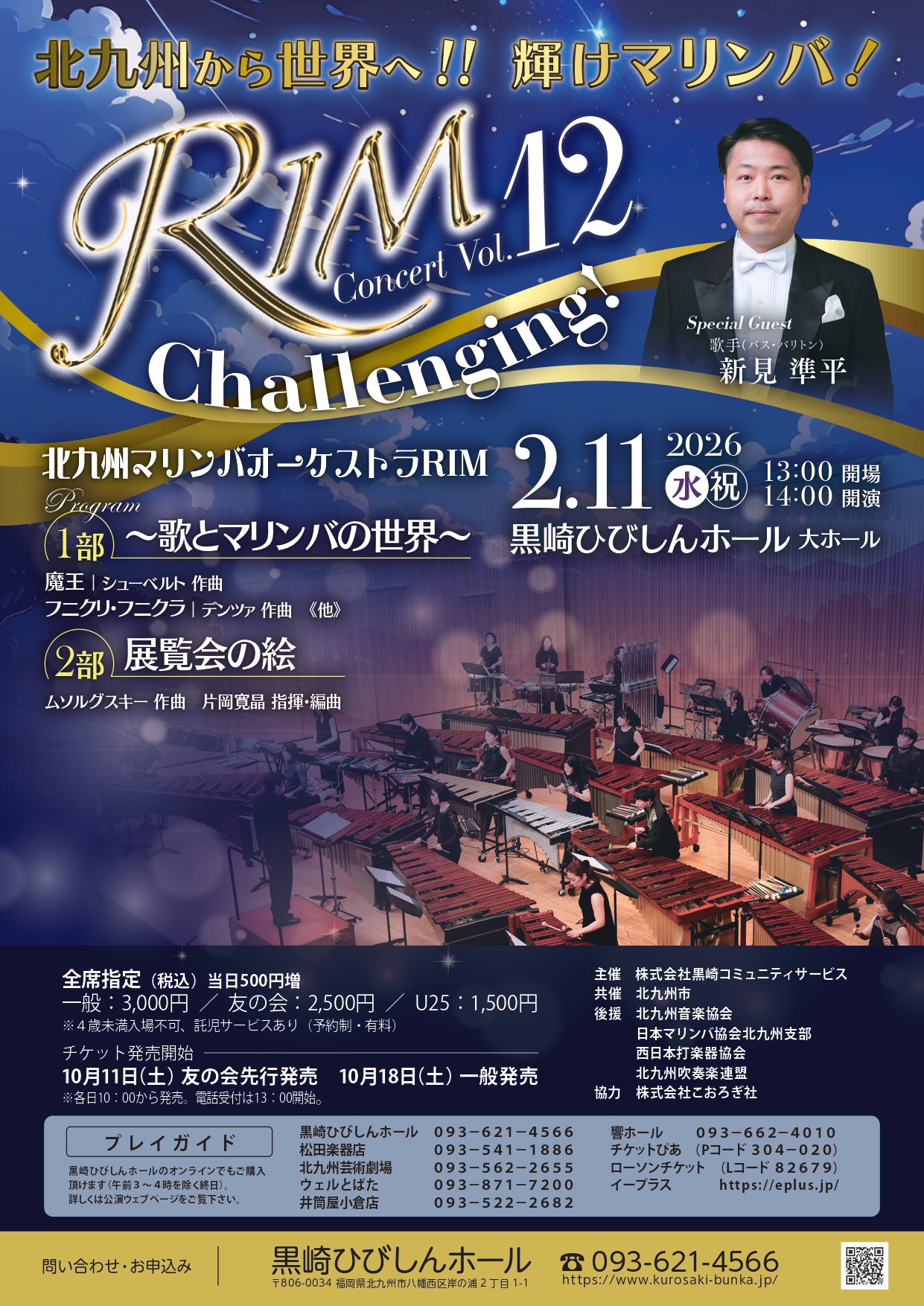 | 公演名 | 北九州マリンバオーケストラ RIM Concert vol.12 Challenging! |