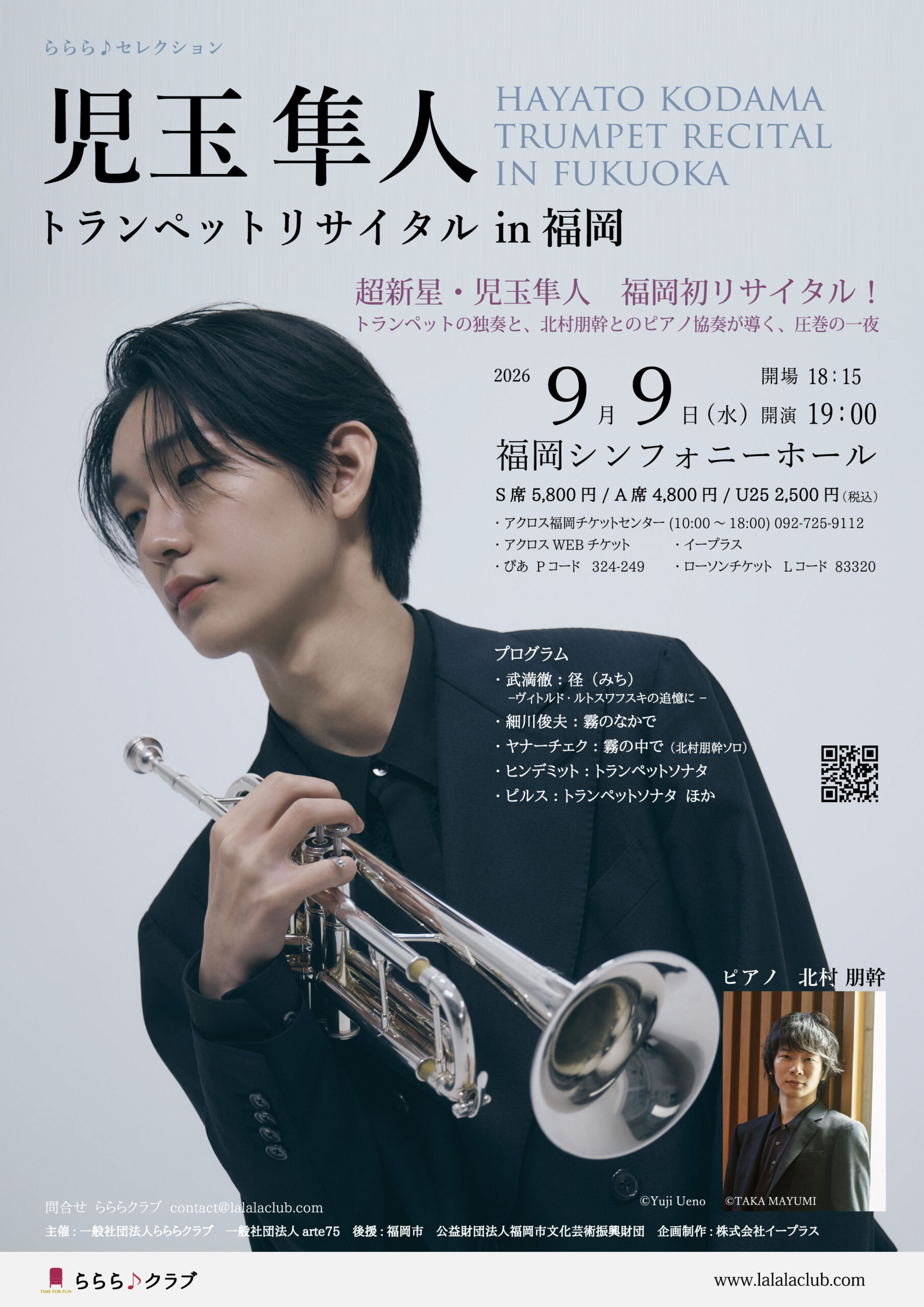 ららら♪セレクション 児玉隼人 トランペットリサイタル in 福岡 開催決定2026年9月9日(水)福岡シンフォニーホール |